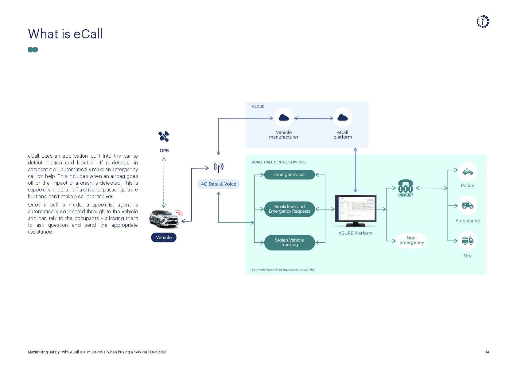 eCall, short for emergency call, is a system that automatically connects a vehicle to emergency services in the event of an accident. It can also be triggered by pushing an SOS emergency button in the vehicle or when a crash is detected. While not as well-known as other safety features, its key selling point is helping emergency responders find, and get to you, faster in your time of need.